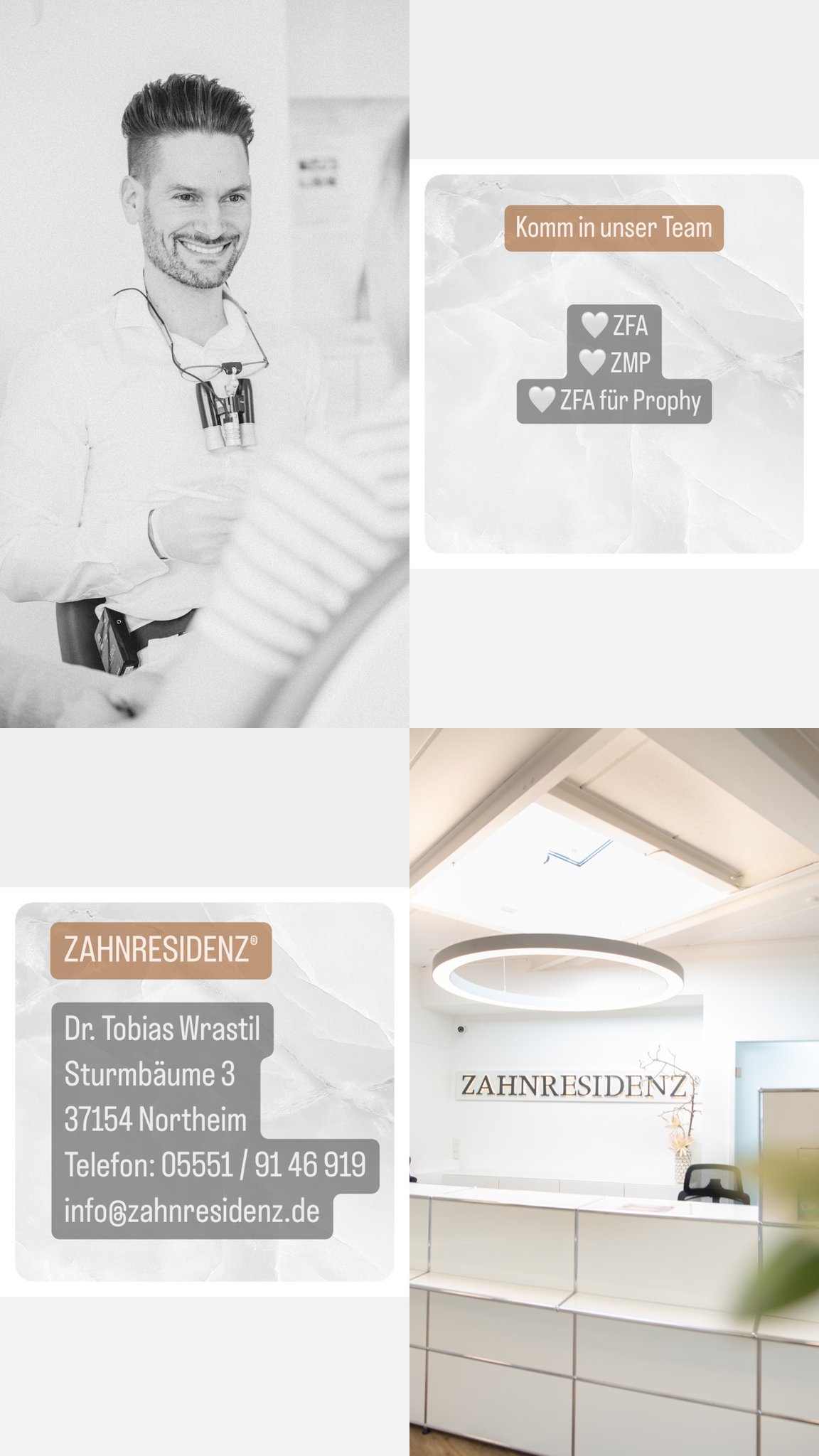 Neugierig geworden? Fülle jetzt unkompliziert unser Kontaktformular aus-🚀 und starte deine Karriere in der Zahnresidenz - wo wir auch dich zum Lächeln bringen!😉